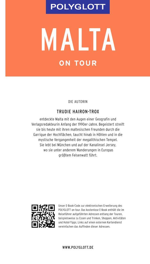 Persönlich & mittendrin! Entspanntes und unabhängiges Reisen mit dem Reiseführer POLYGLOTT on tour Malta, der Sie direkt ins Leben der Locals eintauchen lässt. Die Autorin Trudie Trox führt in abwechslungsreichen Touren über die europäische Insel vor Afrik...