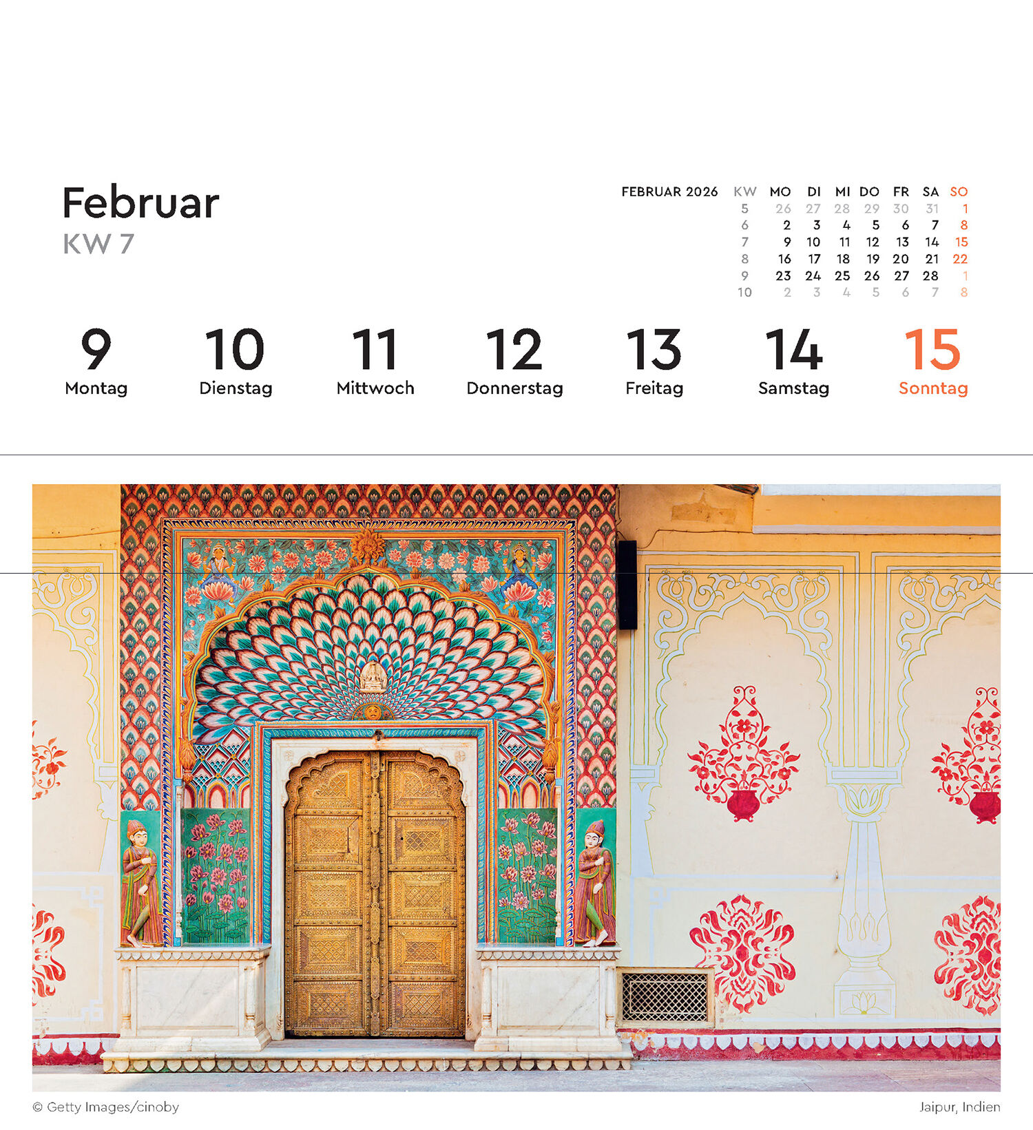 Woche um Woche begleitet dieser KUNTH Postkartenkalender Türen 2026 mit atemberaubenden Bildern durch das Jahr auf dem Schreibtisch oder als Hingucker an der Wand. Die Postkarten zum Herauslösen können dann als Gruß versendet werden. Die Fotografien zeigen Tü...