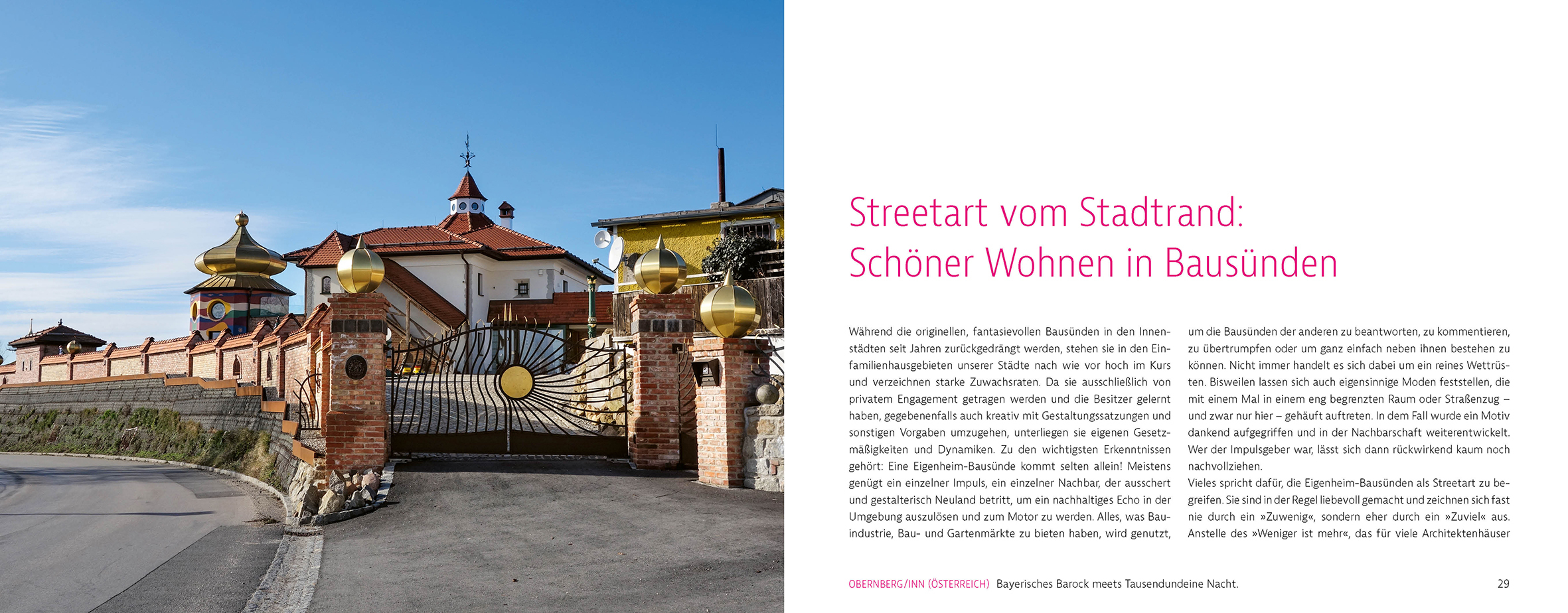 Doppelhäuser mit zwei Gesichtern, abenteuerliche Mottogärten, expressive Zaun- und Garagenkreationen: In den Einfamilienhausgebieten unserer Städte stehen Bausünden hoch im Kurs! Meist genügt ein einzelner Impuls, ein einzelner Nachbar, der ausschert und gesta...