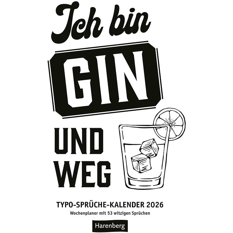 Typo-Sprüche-Kalender s/w Wochenplaner 2026 - mit 53 witzigen Sprüchen