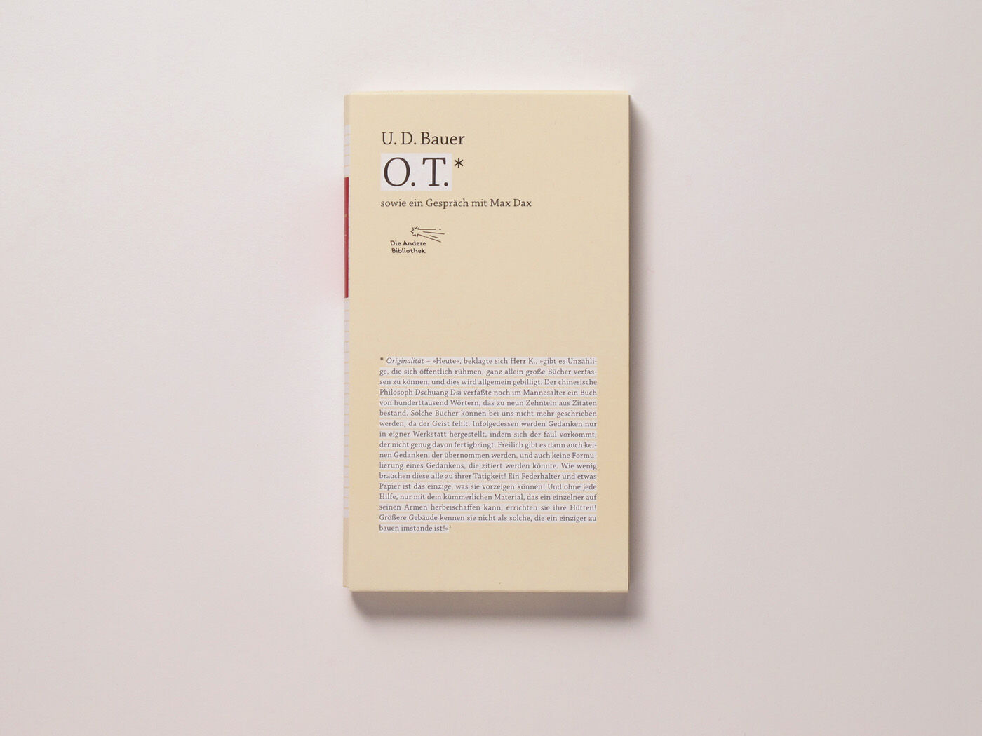 »U.D. Bauer reiht in ihrem Romandebüt wie in einem komplexen Sudoku Zitat an Zitat und schneidet die Welt in über dreitausend Ebenen. O.T. begegnet der Willkür unserer digitalen Welt mit der robusten Verbindlichkeit der Literatur. Ein Glücksfall!« Alexander Kl...