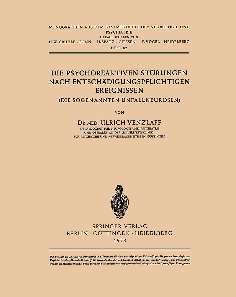 Die heute giiltige soziale Gesetzgebung ist darauf abgestellt, daB lediglich die korperlichen Folgen von Unfallen, Kriegseinwirkungen oder anderen entschadi gungspflichtigen Ereignissen berentet werden, wohingegen deren seelische Aus wirkungen - die unter die ...