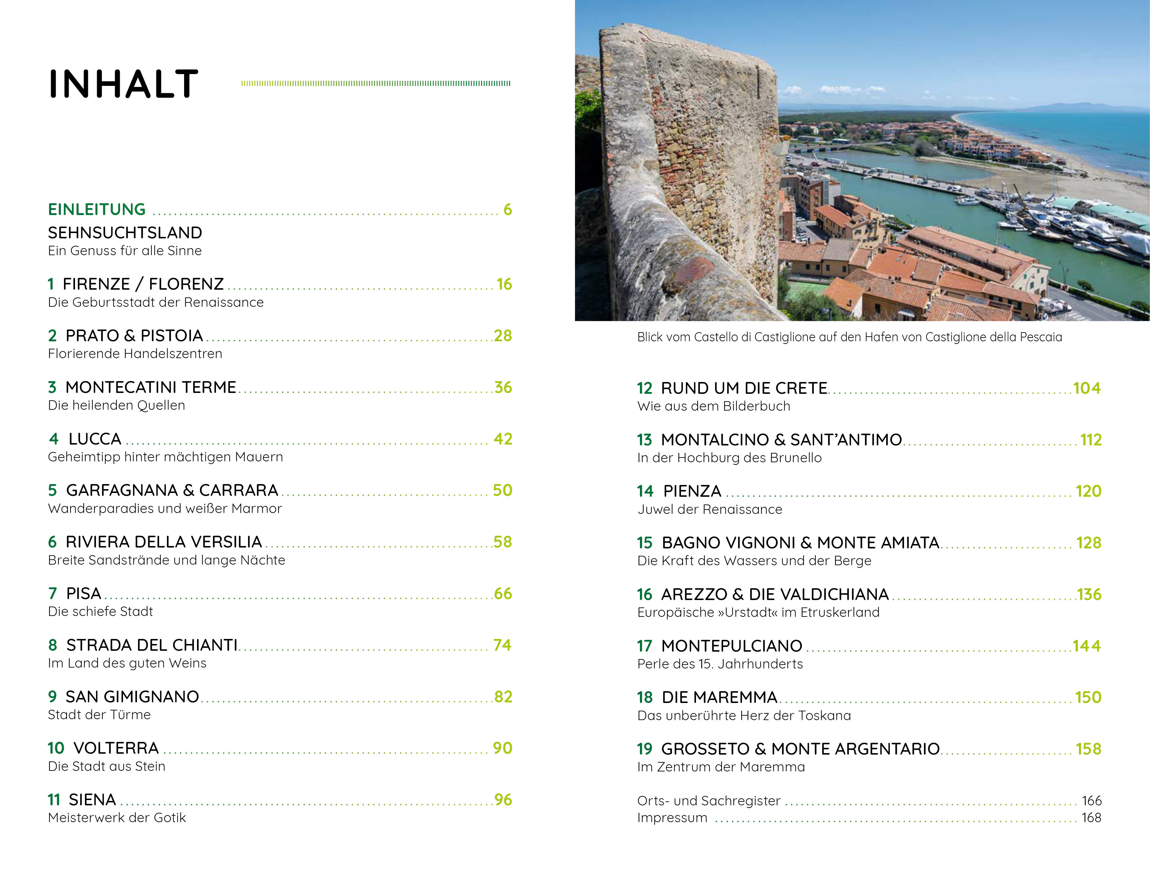 Weinberge und Olivenhaine, Zypressen und Sandstrände prägen ihr Bild: die Toskana. Dazu locken Geschichte, Kunst und Kultur. Und la Cucina Italiana sowie grandiose Weine erfreuen den Gaumen. Damit Sie bei all dem Angebot und der Auswahl nicht den Überblick ver...