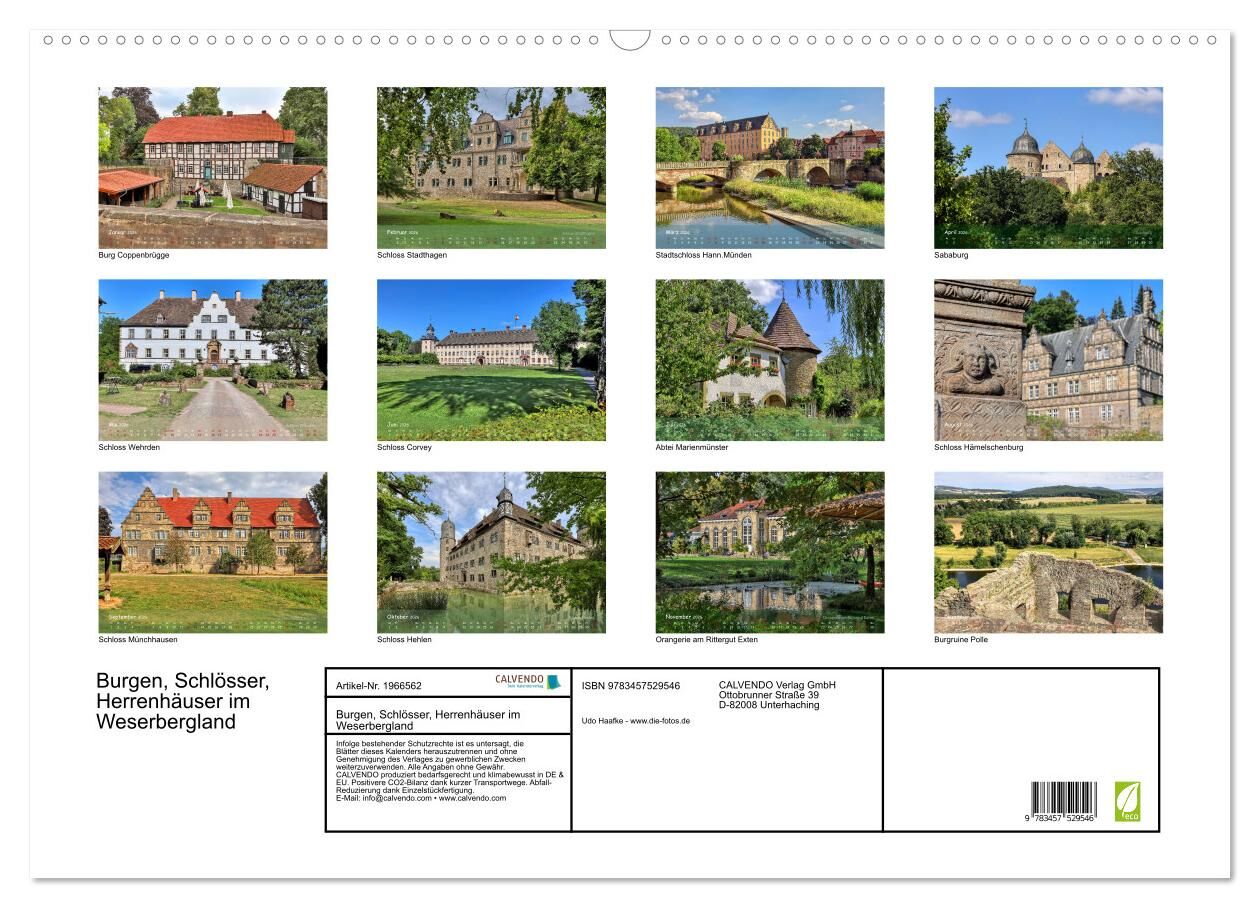 Burgen, Schlösser, Herrenhäuser im Weserbergland (Wandkalender 2026 DIN A2 quer), CALVENDO Monatskalender