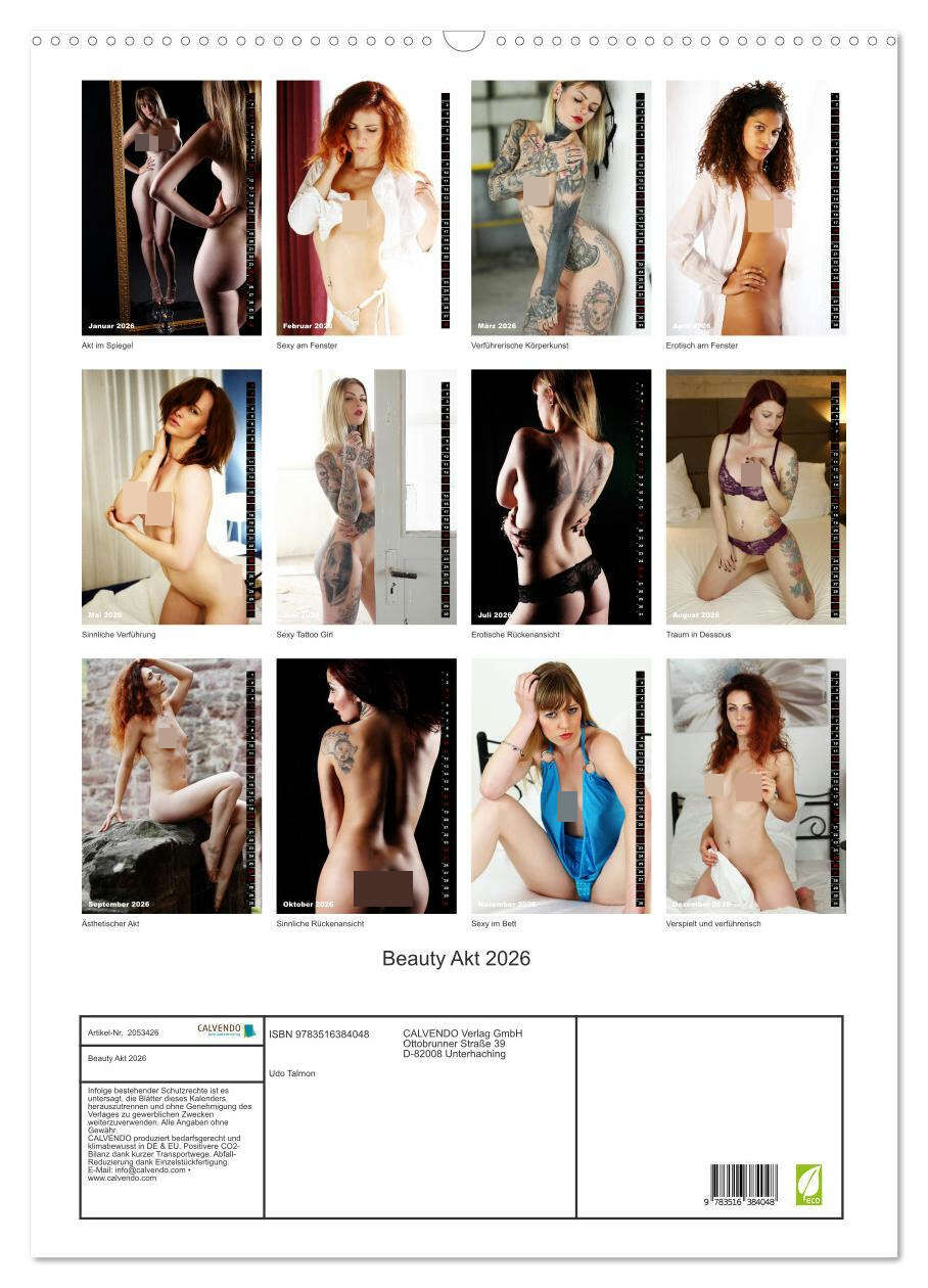 Beauty Akt 2026 (Wandkalender 2026 DIN A2 hoch), CALVENDO Monatskalender