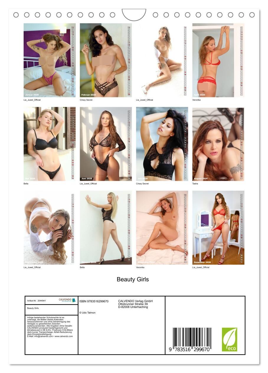 Beauty Girls (Wandkalender 2026 DIN A4 hoch), CALVENDO Monatskalender