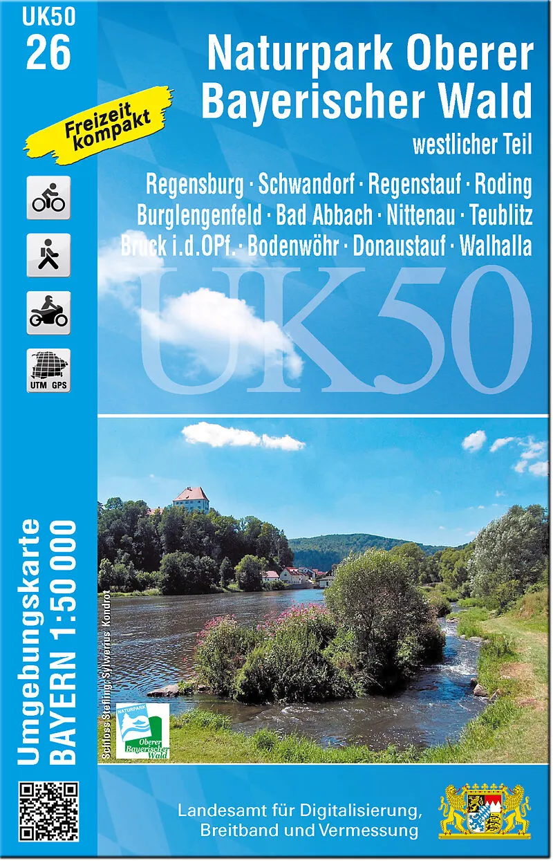 Die amtliche Reihe der UK50 (Umgebungskarte 1:50000) bietet für zusammenhängende bayerische Regionen gezielte Freizeitinformationen. Kartengrundlage ist die TK50 (Topographische Karte 1:50000) mit UTM-Gitter für GPS-Nutzer und Geländedarstellung. Die UK50-26 z...