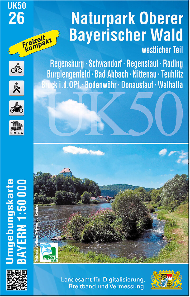 Die amtliche Reihe der UK50 (Umgebungskarte 1:50000) bietet für zusammenhängende bayerische Regionen gezielte Freizeitinformationen. Kartengrundlage ist die TK50 (Topographische Karte 1:50000) mit UTM-Gitter für GPS-Nutzer und Geländedarstellung. Die UK50-26 z...