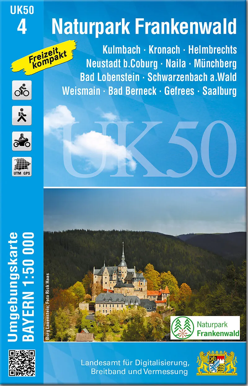 Die Kartenserie UK50 im Maßstab 1:50 000 kombiniert den Vorteil einer großen Gebietsdarstellung mit der Wiedergabe eines vielfältigen Inhalts, der besonders auf die Bedürfnisse von Radfahrern und Wanderern abgestimmt ist. 52 Einzelblätter stellen Bayern fläche...
