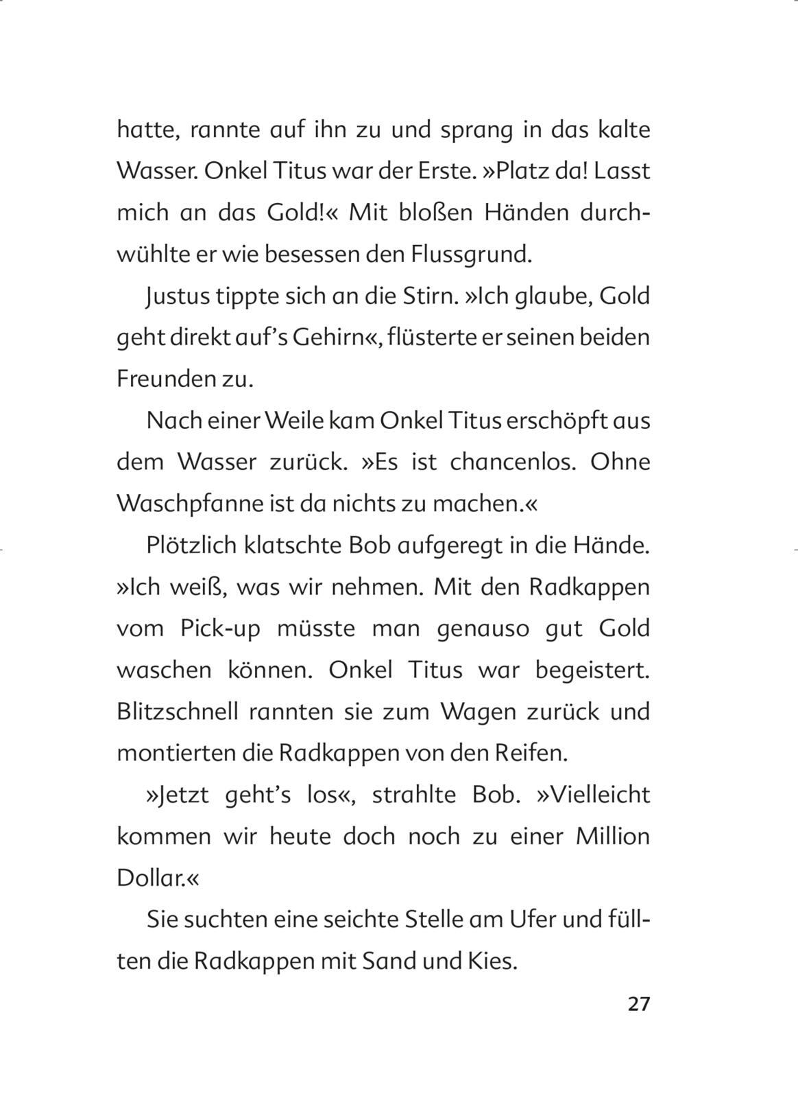 Auf der Jagd nach dem glänzenden Metall ... In Rocky Beach gehts rund. In den angrenzenden Bergen ist Gold gefunden worden und alle Anwohnerinnen plündern ihre Sparbücher, um die begehrten Schürfrechte zu kaufen. Die drei Detektive und Onkel Titus sind natürl...