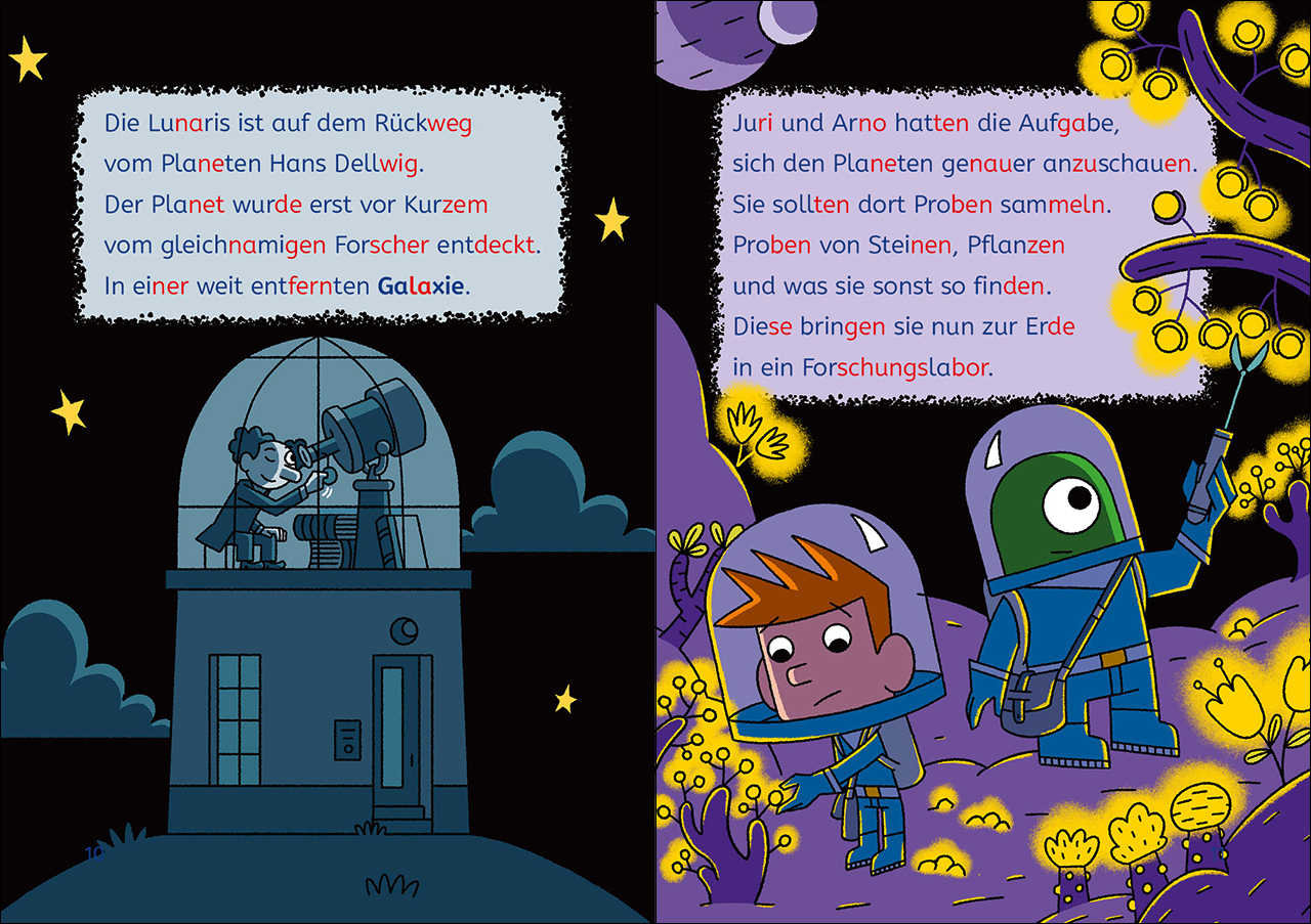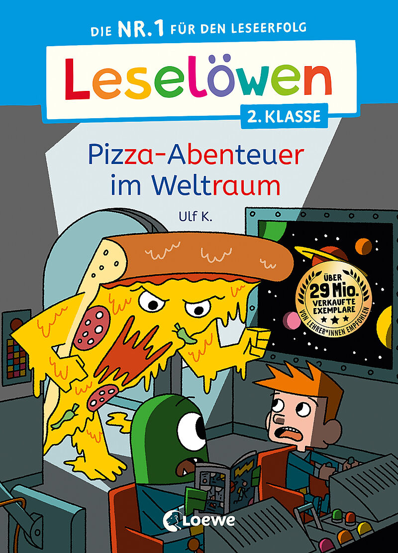 Leselöwen 2. Klasse - Pizza-Abenteuer im Weltraum Weltraum-Abenteuer mit Kapitän Juri Der Angriff einer riesigen Pizza das kann einem nur im Weltraum passieren. Kapitän Juri und sein Freund Arno sind mit Käsefäden gefesselt. Ob sie sich befreien können? Und wa...