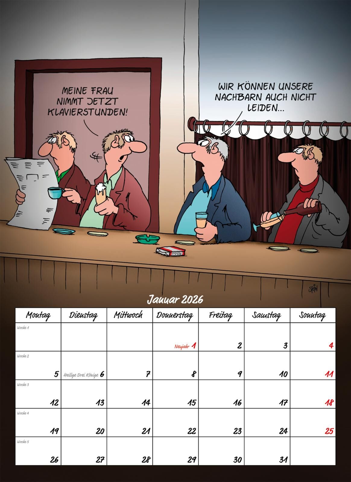 Ein Monatskalender für die Wand mit lustigen Cartoons von Uli Stein rund ums Thema MÄNNER! Dieser neue Themenkalender von Uli Stein ist ein Wandkalender, der in keinem Männerhaushalt fehlen darf! Jeden Monat ein neuer Cartoon für die Wand. So gibt es das ganz...