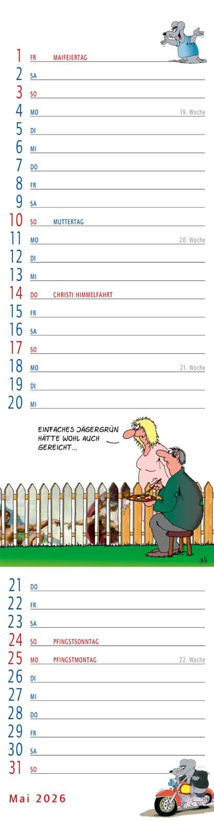 Schlank, praktisch, lustig: Der beliebte Streifenkalender von Uli Stein sorgt auch 2026 wieder für große Lacher! Seit Jahren ist dieser kleine Planer für die Wand ein Bestseller. Das überrascht nicht, denn er ist genauso praktisch wie lustig! Durch sein schla...43 Kunden haben diesen Artikel kürzlich gekauft.
