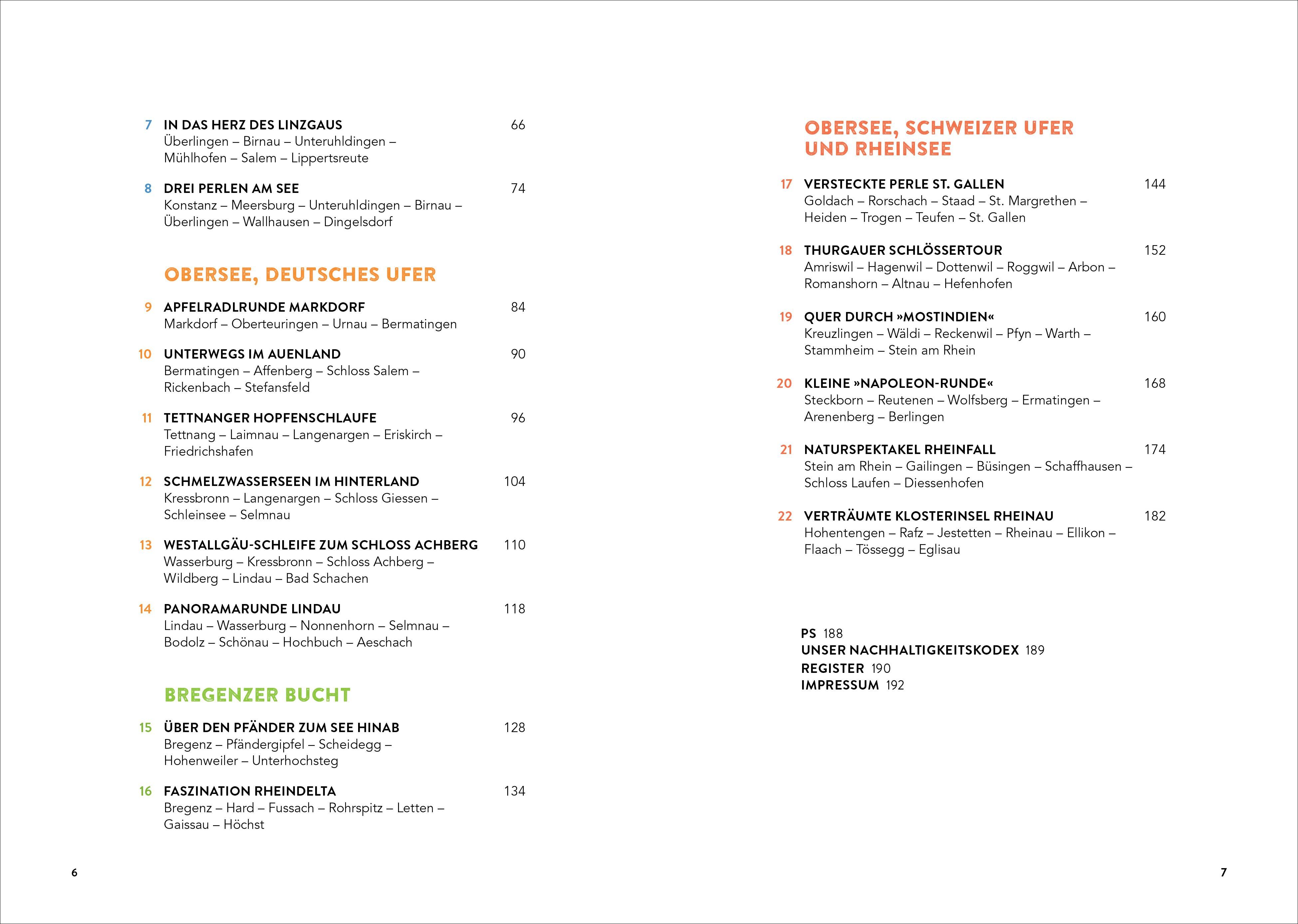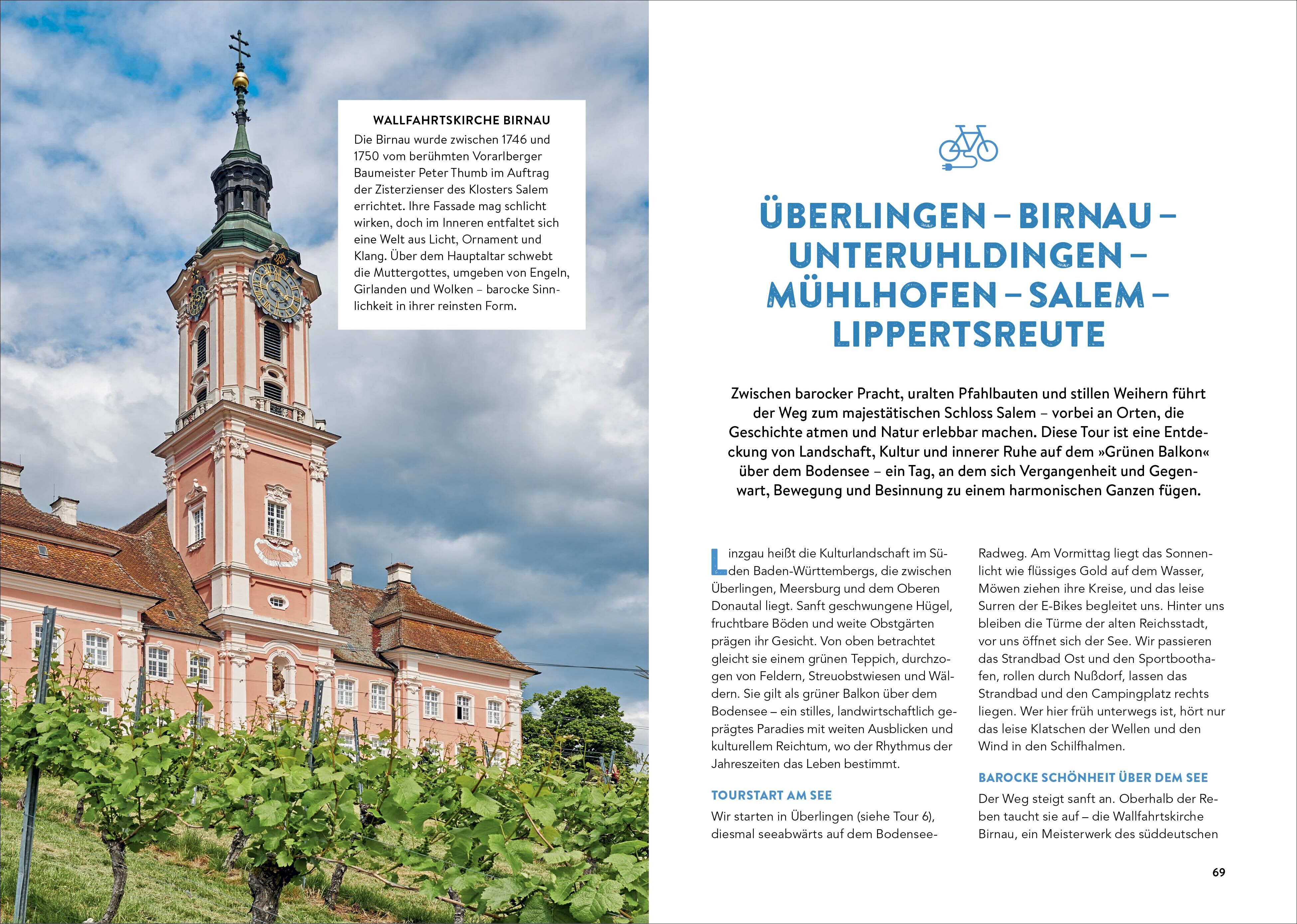 NATUR PUR UND KULTURELLE SCHÄTZE Abwechslungsreiche Radtouren führen durch Moorlandschaften, vorbei an barocken Kirchen und Schlössern, durch naturnahe Idyllen und vielfältige Gegenden im Vier-Länder-Eck und offenbaren alles, was der Bodensee zu bieten hat! A...