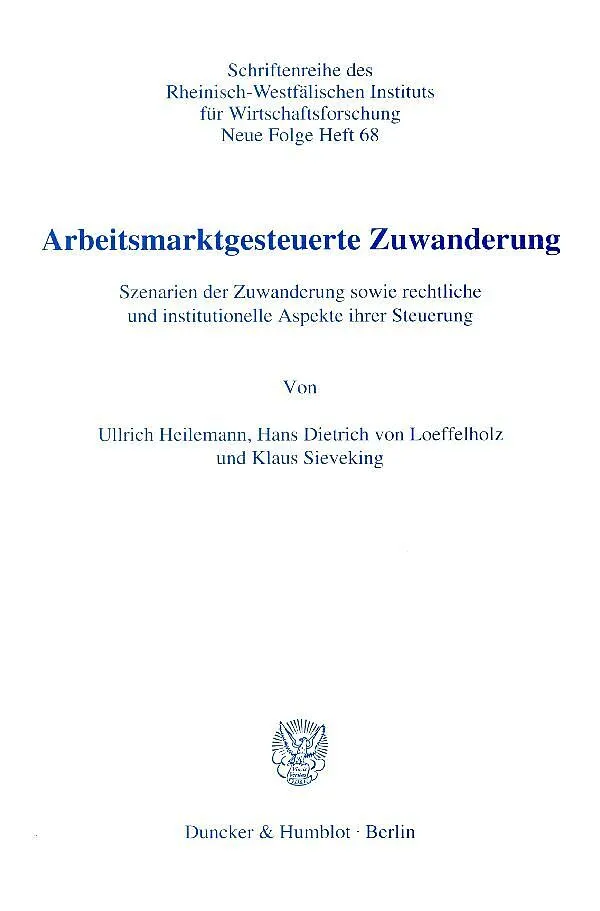 Deutschland wird auch in Zukunft ein bedeutendes Zuwanderungsziel in Europa sein. Angesichts der längerfristigen Arbeitsmarkterfordernisse und der EU-Osterweiterung wird aber in der Öffentlichkeit eine verstärkte Steuerung von Immigrationen diskutiert. Das neu...
