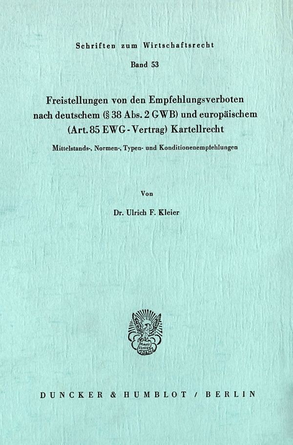 Freistellungen von den Empfehlungsverboten nach deutschem (§38 Abs. 2 GWB) und europäischem (Art.85 EWG-Vertrag) Kartellrecht.