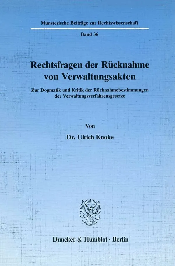Rechtsfragen der Rücknahme von Verwaltungsakten.