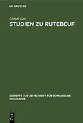 Keine ausführliche Beschreibung für "Studien zu Rutebeuf" verfügbar. Klappentext Die im Jahre 1905 von Gustav Gröber ins Leben gerufene Reihe der Beihefte zur Zeitschrift für romanische Philologie zählt zu den renommiertesten Fachpublikationen der Ro...