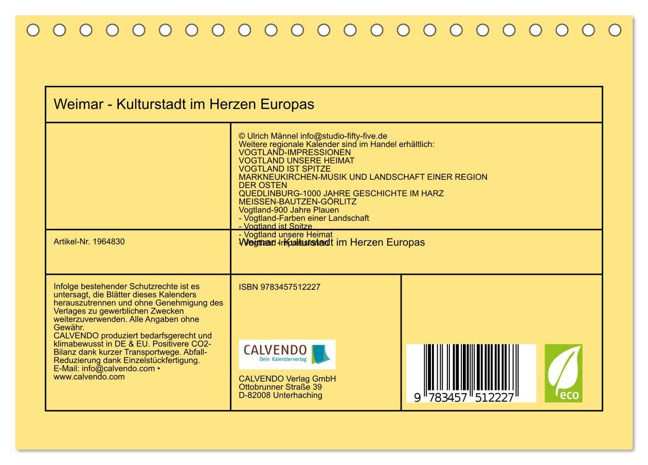 Weimar - Kulturstadt im Herzen Europas (Tischkalender 2026 DIN A5 quer), CALVENDO Monatskalender