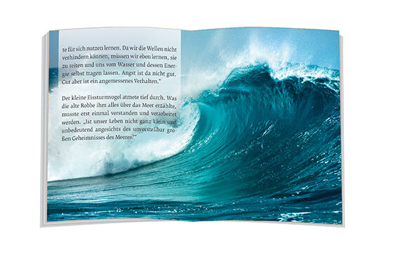 Ein kleiner Eissturmvogel wagt sich aufs offene Meer hinaus. Die grenzenlose Weite und die unergründliche Tiefe verwirren ihn, bis er von einer alten Seehunddame viel über das Wesen des Meeres und seine Bedeutung für das Leben lernt. Immer tiefer lässt er sich...