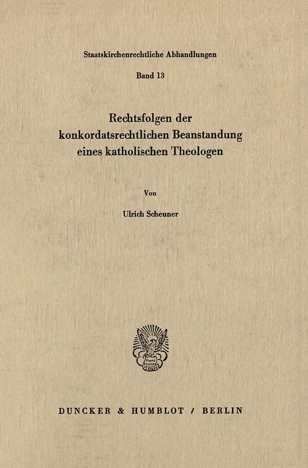 Rechtsfolgen der konkordatsrechtlichen Beanstandung eines katholischen Theologen.