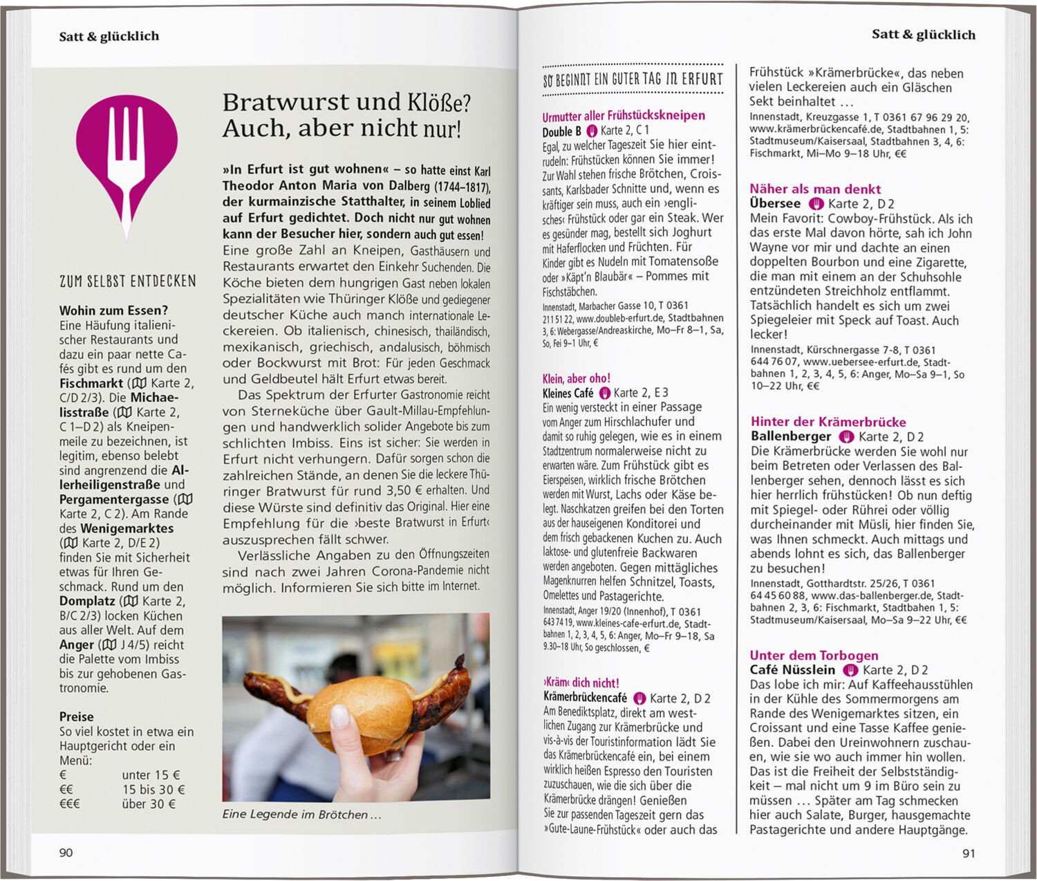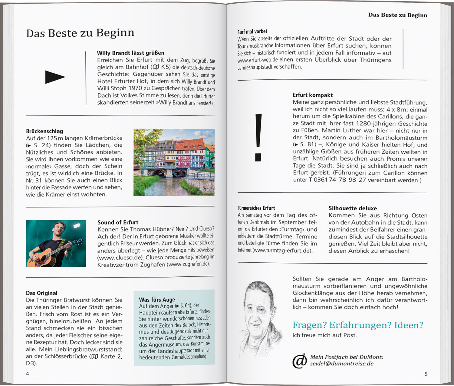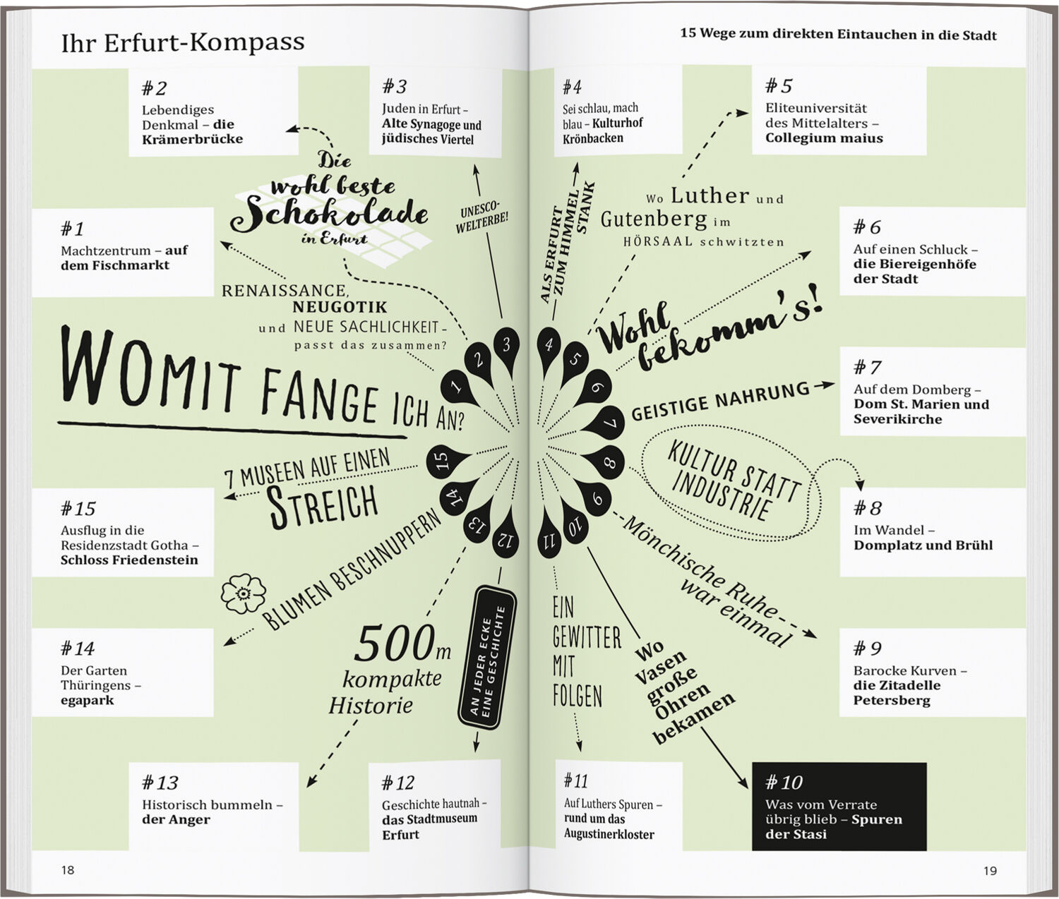 Das »Erford fedsd!« finden die Erfurter, denn ihre türmereiche Heimatstadt geht nicht nur als beschauliche Kleinstadt durch, sondern auch als quirlige Großstadt. Beneidenswertes Thüringen, das in der Bach- und Lutherstadt gleich beiderlei Lebensgefühl besitzt...