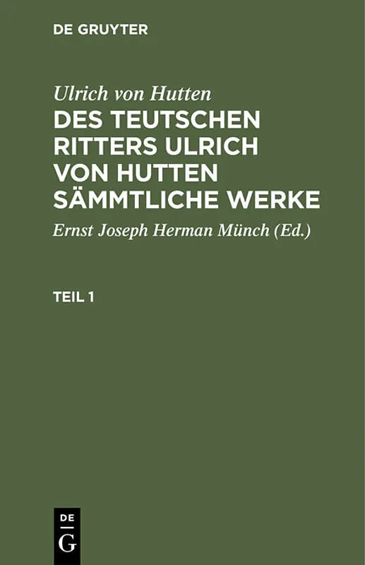 Keine ausführliche Beschreibung für "HUTTEN SÄMMTL. WERKE T. 1 TRHSW" verfügbar. Inhalt Frontmatter -- Verzeichniss der Subscribenten -- Vorwort -- Einleitung -- Huttens Manen -- An Ulrich von Hutten -- I. CARMINA JUVENILIA -- II.Ulrici Hutteni eques...