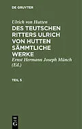 Keine ausführliche Beschreibung für "TEUTSCHEN RITTERS ULRICH V. HUTTEN SW T. 5" verfügbar. Frontmatter -- Vorrede -- I. -- II. Teutsch Requiem oder Klag ilber den Lutherischen Brand zu Mainz -- III. Anferwecker der teutschen Nation, oder Klag und Vo...