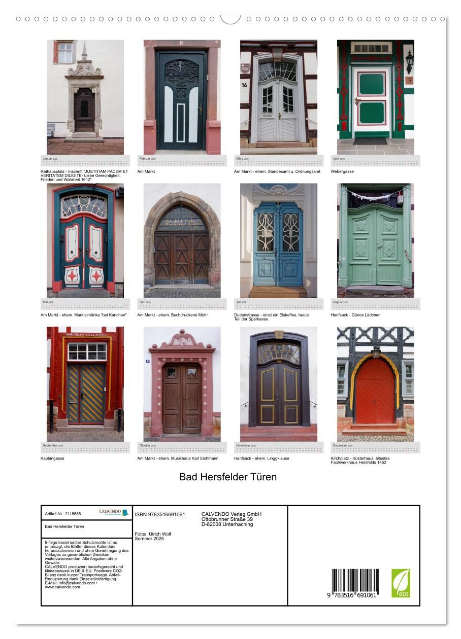 Eine Auswahl der schönsten Bad Hersfelder Türen der Innenstadt, aufgenommen im Sommer 2025. 12 Fotografien einzigartiger, teils historischer Türen der Kur- und Festspielstadt Bad Hersfeld. Ideal als Geschenk oder für Zuhause, für Ihre Geschäftsräume oder Büro....