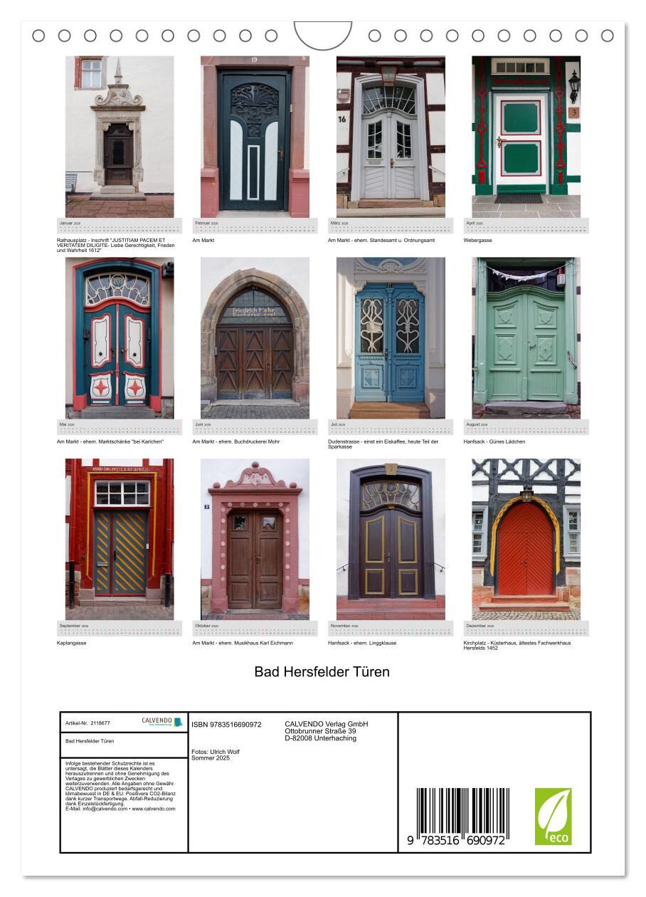 Eine Auswahl der schönsten Bad Hersfelder Türen der Innenstadt, aufgenommen im Sommer 2025. 12 Fotografien einzigartiger, teils historischer Türen der Kur- und Festspielstadt Bad Hersfeld. Ideal als Geschenk oder für Zuhause, für Ihre Geschäftsräume oder Büro....