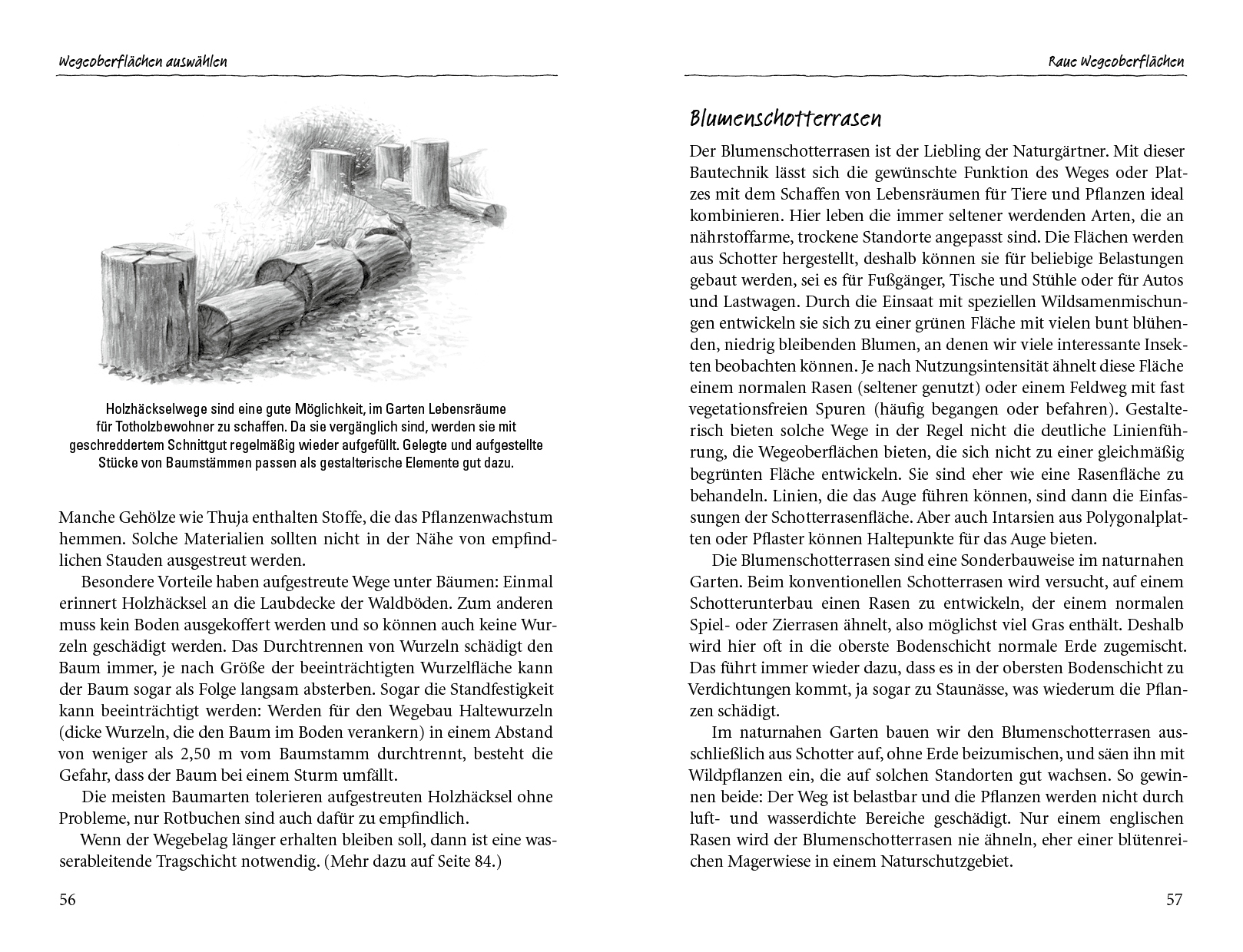 Hier wird Pflaster lebendig: Wege im Naturgarten brauchen keinen Beton und Mörtel, um stabil und langlebig zu sein. Sie werden aus Naturmaterialien wie Holz, Naturstein, Kiesel und Splitt hergestellt. Fugen und Begleitrabatten bieten einheimischen Pflanzen und...
