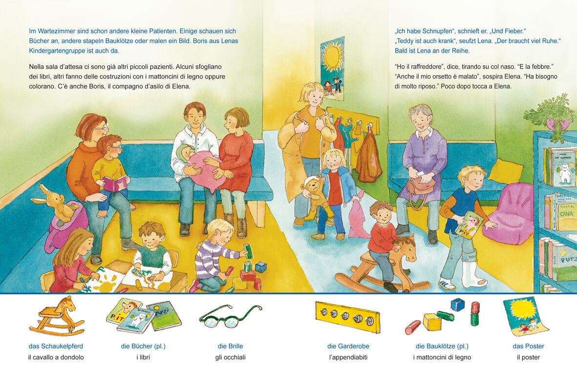 Heute geht Lena mit ihrer Mama zum Kinderarzt. Ihr kranker Teddybär kommt auch mit Farbenfrohe Illustrationen laden zum Betrachten ein und eine Wort-Bild-Leiste auf jeder Seite greift wichtige Gegenstände erneut auf und fördert gezielt das Suchen, Finden und B...