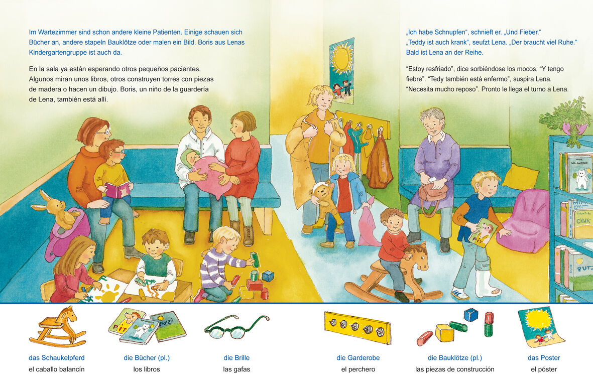 Heute geht Lena mit ihrer Mama zum Kinderarzt. Ihr kranker Teddybär kommt auch mit Farbenfrohe Illustrationen laden zum Betrachten ein und eine Wort-Bild-Leiste auf jeder Seite greift wichtige Gegenstände erneut auf und fördert gezielt das Suchen, Finden und B...