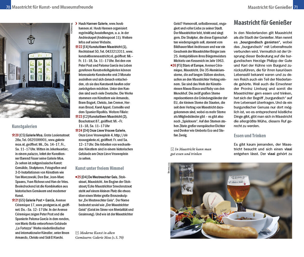 Maastricht vereint Limburger Charme mit französischem Flair. An den Ufern der Maas genießt man Sterneküche oder trifft sich in einem der gemütlichen Eetcafés, kleine Boutiquen und ausgefallene Läden machen die Stadt zu einem beliebten Shoppingziel. Für ein bu...