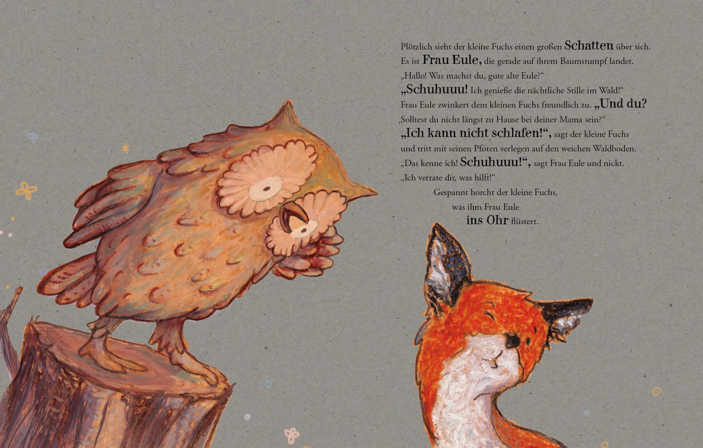 Was tun, wenn man nicht einschlafen kann? Auf seinem nächtlichen Spaziergang macht der kleine Fuchs erstaunliche Entdeckungen: Kann es sein, dass Herr Fledermaus tatsächlich verkehrt herum schläft? Wer macht wohl die lustigen Geräusche hoch oben in der alten ...