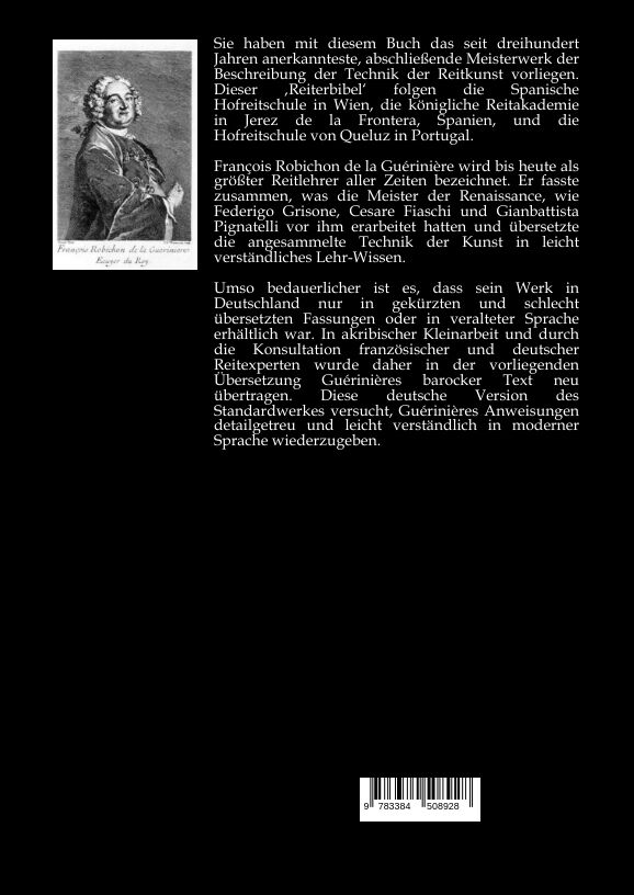 Sie haben mit diesem Buch das seit dreihundert Jahren anerkannteste, abschließende Meisterwerk der Beschreibung der Technik der Reitkunst vorliegen. Dieser Reiterbibel' folgen die Spanische Hofreitschule in Wien, die königliche Reitakademie in Jerez de la Fron...