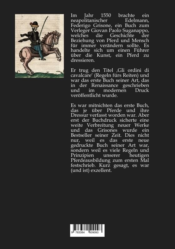 Im Jahr 1550 brachte ein neapolitanischer Edelmann, Federigo Grisone, ein Buch zum Verleger Giovan Paolo Suganappo, welches die Geschichte der Beziehung von Pferd und Mensch für immer verändern sollte. Es handelte sich um einen Führer über die Kunst, ein Pferd...
