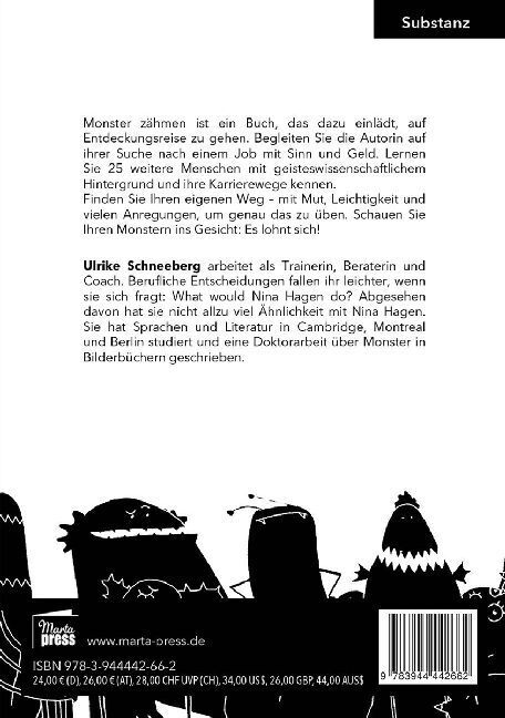 Monster zähmen ist ein Buch, das dazu einlädt, auf Entdeckungsreise zu gehen. Begleiten Sie die Autorin auf ihrer Suche nach einem Job mit Sinn und Geld. Lernen Sie 25 weitere Menschen mit geisteswissenschaftlichem Hintergrund und ihre Karrierewege kennen. Fin...