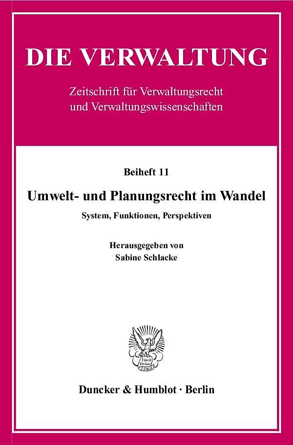 Beiheft 11 zu "Die Verwaltung" ist Prof. Dr. Wilfried Erbguth anlässlich seines 60. Geburtstags gewidmet. Entsprechend seinem Schwerpunkt in Forschung und Lehre behandelt dieses von seinen Schülerinnen und Schülern herausgegebene Heft System und Funktionen des...
