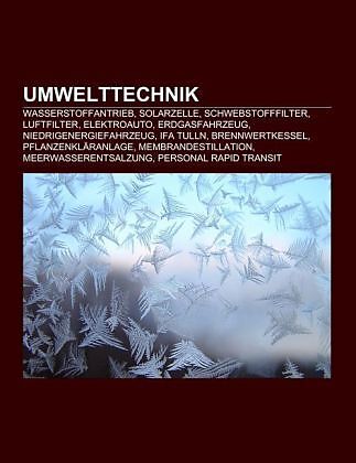 Quelle: Wikipedia. Seiten: 116. Kapitel: Wasserstoffantrieb, Solarzelle, Schwebstofffilter, Luftfilter, Elektroauto, Erdgasfahrzeug, Niedrigenergiefahrzeug, IFA Tulln, Brennwertkessel, Pflanzenkläranlage, Membrandestillation, Meerwasserentsalzung, Personal Rap...