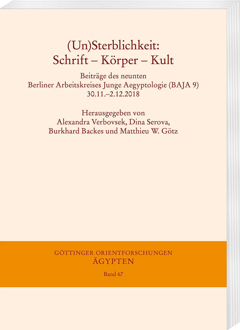 Der Band (Un)Sterblichkeit: Schrift Körper Kult umfasst vierzehn Beiträge internationaler Referentinnen, die im Rahmen der 9. Tagung des Berliner Arbeitskreises Junge Aegyptologie (BAJA) im Dezember 2018 vorgestellt und diskutiert wurden. Unter dem Schlagwort ...