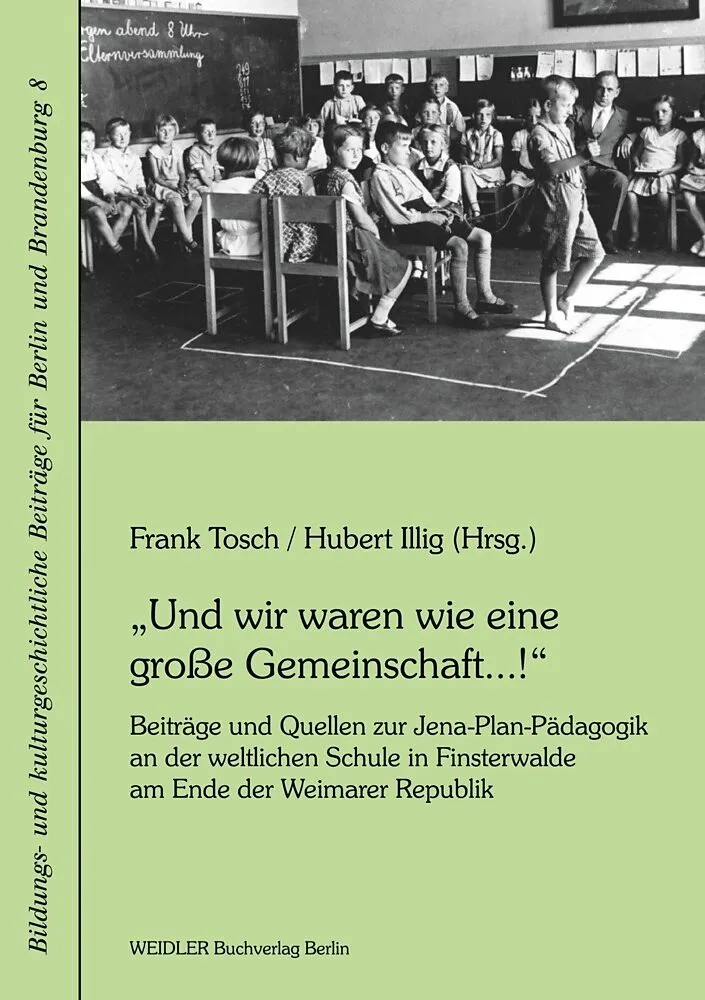 BEITRÄGE: FRANK TOSCH: Von den Sammelklassen über die weltliche Volksschule (Gemeindeschule IV) zur Jena-Plan-Pädagogik in Finsterwalde in der Weimarer Republik. Eine Einleitung in die Erinnerungskontexte des Bandes in Beiträgen und Quellen unterschiedlicher Provenienz HUBERT ILLIG: Zur Vorgeschichte und Auflösung der weltlichen Schule Finsterwalde RAINER ERNST: Der Schulstreit in Finsterwalde und die Auflösung der weltlichen Schule FRANK TOSCH unter Mitarbeit von HUBERT ILLIG: Stadt des Schulfortschritts in der Weimarer Republik: Zur Jena-Plan-Pädagogik an der weltlichen Volksschule in Finsterwalde (1930-1933) FRANK TOSCH / HUBERT ILLIG: Interviews mit GERDA SEMT, geb. PERL: Und wir waren wie eine große Gemeinschaft...! Erinnerungsbericht GERDA SEMT unter Verwendung ihrer Fotosammlung und brieflicher Mitteilungen ehemaliger Mitschülerinnen [2009-2012, 2013-2014] QUELLEN: I. Volksschulwesen in Finsterwalde 1930 Konzeption und pädagogische Gestaltung des Jena-Plans an der weltlichen Schule in Finsterwalde 1930-1933 Dokument 1 FRITZ BEHRENDT: Die Volksbildungspflege, insbesondere das Volksschulwesen in Finsterwalde [1930] Dokument 2 FRITZ BEHRENDT: Die Entwicklung der weltlichen Schule in Finsterwalde [1930] Dokument 3 FRITZ BEHRENDT: Anerkennung der Gemeindeschule 4 [IV] in Finsterwalde als Versuchsschule [1930] Dokument 4 FRITZ BEHRENDT: Aufgelockerte Schularbeit [1931] Dokument 5 [LEHRERKOLLEGIUM]: Arbeitsbericht der weltlichen Schule in Finsterwalde [1932] 1. FRITZ BEHRENDT: Wegführung 2. FRITZ BEHRENDT: Nach den Grundsätzen des Jena-Plans 3. FRITZ BEHRENDT: Die Umstellung 4. FRITZ PEICHERT: Die Arbeit der Untergruppe 5. HERBERT ILLIG: Die Mittelgruppe 6. FRITZ BEHRENDT: Die Obergruppe 7. PAUL SCHÜLER: Arbeitsmittel 8. FRITZ PEICHERT: Schulleben Dokument 6 FRITZ BEHRENDT: Wochenschlußstunde [1932] Dokument 7 [LEHRERKOLLEGIUM]: Schulleben und Arbeit der Gemeindeschule IV in Finsterwalde (N.-L.) Michaelis 1930 bis Ostern 1933. [Auszug] [1934] 1. FRITZ PEICHERT: Organisation der Kurse 2. EMMI NEUMANN [verh. PEICHERT]: Der Kreis Dokument 8 FRITZ BEHRENDT: Praktisches aus dem Jena-Plan für alle Schulen [1935] II. Erinnerungen von Lehrerinnen der weltlichen Schule in Finsterwalde Dokument 9 Herbert ILLIG: Finsterwalde (1927-1933) Auszug aus den Lebenserinnerungen [1947] Dokument 10 EMMI NEUMANN [verh.] PEICHERT UND FRITZ PEICHERT: Briefliches und Biografisches 1. Briefliche Erinnerungen: EMMI PEICHERT an HUBERT ILLIG [1982] 2. Biografisches: EMMI NEUMANN & FRITZ PEICHERT [1929] III. Erinnerungen von Schüler*innen der weltlichen Schule in Finsterwalde Dokument 11 JOACHIM BARDT: Die weltliche Schule in Finsterwalde [1992/1993] [ERINNERUNGSBERICHTE Dokument 12 ILSE BLOCK: [Schreiben] an HEIN RETTER vom 24. Mai 1993 [ERINNERUNGSBERICHT] Dokument 13 GERDA SEMT: Jena-[P]lan eine Schule, aber ohne Zensuren. Über die Jena-[P]lan-[S]chule in Finsterwalde Erinnerungen [1993] Dokument 14 GERDA SEMT: [Schreiben] an HEIN RETTER vom 30. Juni 1993 [ERINNERUNGSBERICHT] Dokument 15 GERDA SEMT: 1. Anschreiben und Bericht an die Jena-[P]lan-Initiative Bayern e.V. vom 21. April 1996 2. Meine Schulzeit von 1929 bis 1933 in der weltlichen Schule, Finsterwalde, die ab Herbst 1930 nach dem Jena-Plan von Professor Peter Petersen unterrichtete [ERINNERUNGSBERICHT]] IV. Weltliche Sammelklassen bzw. Schule in Finsterwalde in ausgewählten zeitgenössischen regionalen Presseberichten und Dokumenten Dokument 16 Die weltliche Schule [1928] Dokument 17 1. Irrtümer um die weltliche Schule [1928] 2. Ein letztes Wort! [1928] 3. Alte oder weltliche Schule? [1928] 4. Eingesandt. Erwiderung eines Vaters auf den Artikel Alte oder weltliche Schule? im Niederlausitzer Anzeiger [1928] Dokument 18 Weltliche Schule [Elternversammlung] [1929] Dokument 19 1. Spielabend der weltlichen Schule [1929] 2. Kinder laden zum Spielabend ein! [1929] 3. Der Spielabend der weltlichen Schule [1929] Dokument 20 1. Die Weihnachtsbücherausstellung [1929] 2. Bücherausstellung der [w]eltlichen Schule [1930] 3. Die Weihnachtsbücherausstellung der [w]eltlichen Schule [1930] Dokument 21 1. Was geht in unseren Schulen vor? [1930] 2. Wird die weltliche Schule vor der christlichen Schule in Finsterwalde bevorzugt? [1930] Dokument 22 1. Elternversammlung der [w]eltlichen Schule [1930] 2. Eingesandt [1930] 3. Eingesandt [1930] 4. Um die Neue Schule. Zum Vortrag von Professor Petersen Jena in der Elternversammlung der [w]eltlichen Schule [1930] 5. Weltliche Schule. Vortrag und Schulbesuch von Professor Petersen, Jena [1930] Dokument 23 1. Achtung! Weltliche Schule! Winterfest! [1930] 2. Winterfest der weltlichen Schule [1930] Dokument 24 1. Kampf um Kitsch [1932] 2. Werbeabend der weltlichen Schule [1932] 3. Kampf um Kitsch. Werbeabend der [w]eltlichen Schule [1932] Dokument 25 1. Weltliche Schule [Arbeitstagung] [1932] 2. Weltliche Schule Arbeitstagung [1932] Dokument 26 Weltliche Schule [Elternversammlung] [1932] Dokument 27 Pädagogische Woche in Finsterwalde [1932] Dokument 28 Kinder der [w]eltlichen Schule berichten. Schul-Radfahrt nach Riesa [1932] Dokument 29 Bürgermeister Pg. Münster vor der Finsterwalder Einwohnerschaft [Pressebericht über Rede Auszug] [1933] Dokument 30 Liste der aus der Lehrerbücherei der Gemeindeschule IV lt. Schreiben des Magistrats der Stadt Finsterwalde an den Regierungspräsidenten, Schulrat, in Frankfurt/Oder vom 14.08.1933 entfernten bzw. polizeilich beschlagnahmten Quellen- und Literaturverzeichnis Abbildungsverzeichnis Autorenverzeichnis
