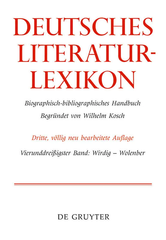 The Dictionary of German Literature is one of the best-known and most comprehensive and reliable works of reference on German literature. It spans a period from the Early Middle Ages to most recent times. Vol. 34 includes articles on Johann Georg August Wirth...