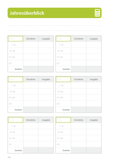 Möchten Sie gern Einnahmen und Ausgaben kontrollieren, optimieren und damit sparen? Oder sind Sie dabei den Überblick über Ihre Finanzen zu verlieren? Nutzen Sie dann das Haushaltsbuch in praktischer Rinbindung! Organisieren Sie Ihren Haushalt, Ihre Familie un...