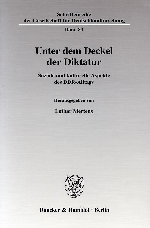 Dieser Sammelband beinhaltet die überarbeiteten Vortragsreferate, welche auf einer Kooperationstagung der Fachgruppe Sozialwissenschaft der Gesellschaft für Deutschlandforschung e. V. in der Akademie für politische Bildung in Tutzing im April 2001 gehalten wur...