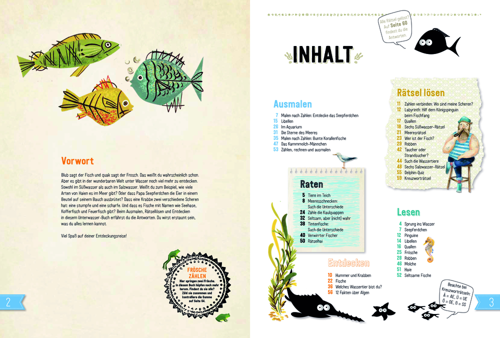 BLUBB sagt der Fisch und QUAK sagt der Frosch. Das weiß jeder! Aber es gibt in der wunderbaren Welt unter Wasser noch viel mehr zu entdecken. Sowohl im Süßwasser als auch im Salzwasser. Weißt du zum Beispiel, wie viele Arten von Haien es im Meer gibt? Oder da...