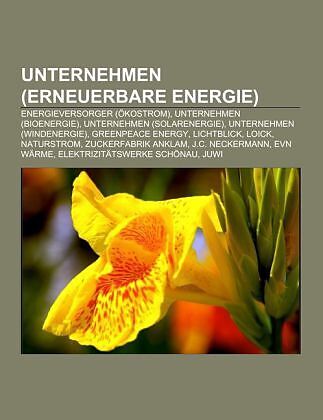 Quelle: Wikipedia. Seiten: 51. Kapitel: Energieversorger (Ökostrom), Unternehmen (Bioenergie), Unternehmen (Solarenergie), Unternehmen (Windenergie), Greenpeace Energy, Lichtblick, Loick, Naturstrom, Zuckerfabrik Anklam, J.C. Neckermann, EVN Wärme, Elektrizitä...