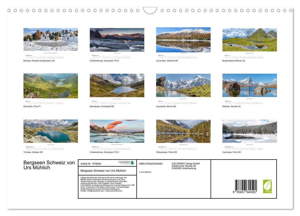 Bergseen Schweiz von Urs Mühlich (Wandkalender 2026 DIN A3 quer), CALVENDO Monatskalender