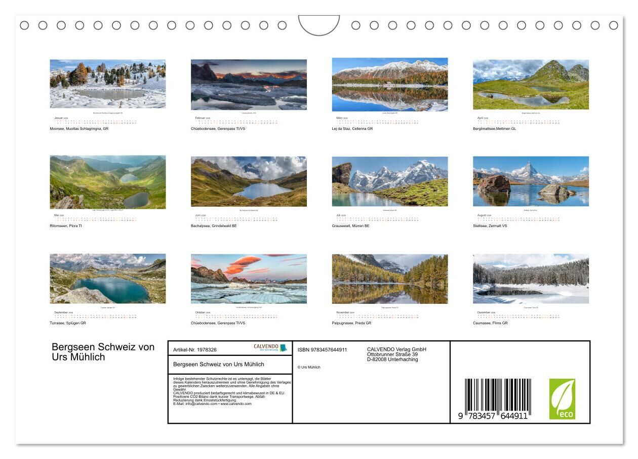 Bergseen Schweiz von Urs Mühlich (Wandkalender 2026 DIN A4 quer), CALVENDO Monatskalender