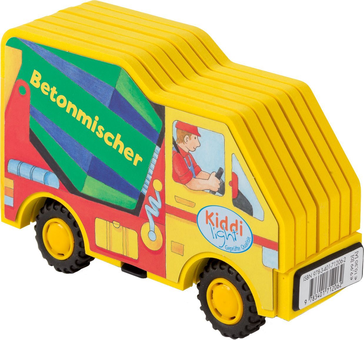 Da kommt der Betonmischer tatsächlich auf echten Rädern angerollt! Dank Aufziehmechanismus fährt das kleine Bilderbuch ganz von allein etwa sechs Meter weit. Hier erfahren Autofans, was der Betonmischer auf der Baustelle alles kann.